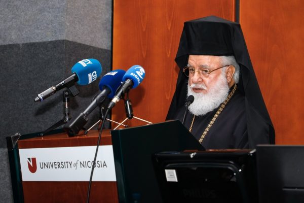 Στον σύντομο και βαρυσήμαντο Χαιρετισμό του, που ακολούθησε, ο Πανιερώτατος επεσήμανε ότι: «Η Εκκλησία της Κύπρου, με τη λειτουργία του Τμήματος Θεολογικών Σπουδών του Πανεπιστημίου Λευκωσίας και με τα Μεταπτυχιακά και Διδακτορικά Προγράμματά του, αποκτά επάρκεια, ορμή και δυναμισμό και έτσι είναι πλέον σε θέση να υπερασπίζεται καλύτερα το κύρος και τα δίκαιά της, αλλά και την ορθόδοξη πίστη έναντι των ποικίλων ιδεολογικών, φιλοσοφικών, κοινωνικών και άλλων ρευμάτων».
