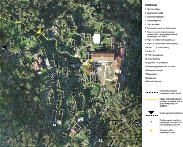 Με την θετική γνωμοδότηση της μουσειολογικής και μουσειογραφικής μελέτης, από το Κεντρικό Αρχαιολογικό Συμβούλιο, το Παλάτι γίνεται επισκέψιμος μουσειακός-εκθεσιακός χώρος. Καθολική πρόσβαση παρέχουν στα ΑμεΑ και στα εμποδιζόμενα άτομα οι διαμορφώσεις του περιβάλλοντος χώρου και το δίκτυο των διαδρομών. Αποκαθίσταται η πλατεία, έμπροσθεν του Ανακτόρου, όπως είχε διαμορφωθεί στο α΄μισό του 15ου αι. –ο χώρος λειτουργούσε ως διοικητικό κέντρο, προσωρινή έδρα της αυτοκρατορικής διοίκησης- ενώ η υφιστάμενη ατραπός δέχεται βελτιωτικές παρεμβάσεις, ώστε να διασφαλιστεί η πρόσβαση στο Παλάτι σε άτομα μειωμένης κινητικότητας, με ειδικό όχημα μεταφοράς και μέσω εξωτερικού αναβατορίου. Ολοι οι χώροι του μνημείου καθίστανται απολύτως επισκέψιμοι.