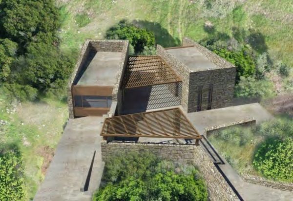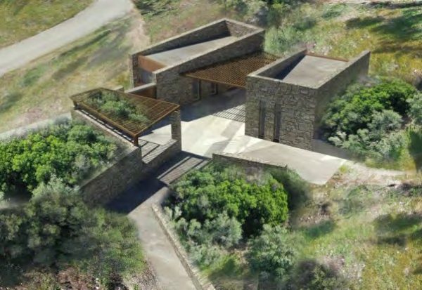 Φωτορεαλιστική απεικόνιση της εισόδου και των υποδομών εξυπηρέτησης του κοινού στον αρχαιολογικό χώρο Περιστεριάς