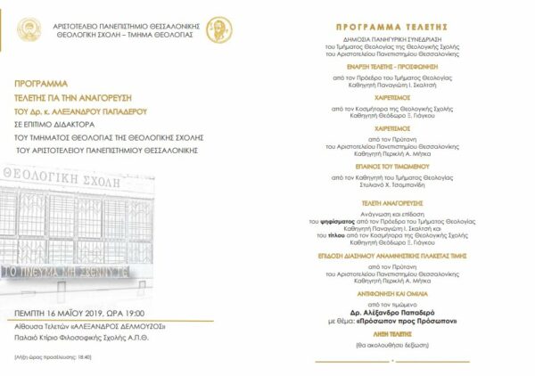 Αναγόρευση επίτιμου διδάκτορα της Θεολογικής Σχολής Α.Π.Θ