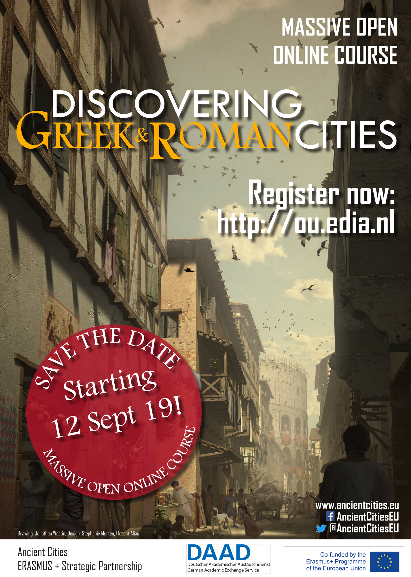 Το μαζικό ελεύθερο διαδικτυακό μάθημα (MOOC) «Ανακαλύπτοντας τις ελληνικές και ρωμαϊκές πόλεις» προσφέρει βασικές γνώσεις γύρω από το σχεδιασμό και την ιστορία των πόλεων κατά την ελληνική και ρωμαϊκή αρχαιότητα, παράλληλα με τη μεθοδολογία της αρχαιολογίας του αστικού ιστού. Παρακολουθώντας το, θα αντιληφθείτε τη σημασία της οικιστικής αρχαιολογίας και την ποικιλότητα της κοινής ευρωπαϊκής και μεσογειακής μας κληρονομιάς.