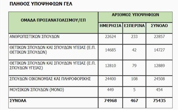 Επισημαίνεται ότι το πλήθος των υποψηφίων προκύπτει από μία τουλάχιστον συμμετοχή σε πανελλαδικά εξεταζόμενο μάθημα.