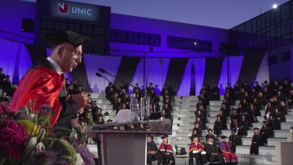 Στην Τελετή παρέστη και απηύθυνε χαιρετισμό ο Υπουργός Παιδείας, Πολιτισμού Αθλητισμού και Νεολαίας, κ. Πρόδρομος Προδρόμου, ο οποίος συνεχάρη το Πανεπιστήμιο Λευκωσίας για τις επιτυχίες του στις διεθνείς κατατάξεις, χαρακτηρίζοντάς το ως «υψηλής ποιότητας ίδρυμα Ανώτερης Εκπαίδευσης». Το Πανεπιστήμιο Λευκωσίας, σημείωσε, συνεχίζει δυναμικά την αναπτυξιακή πορεία του με στόχο την προσέλκυση τόσο ντόπιων όσο και ξένων φοιτητών, ακολουθώντας μια στρατηγική βασισμένη στη διεθνοποίηση, την εξωστρέφεια και στην ανάδειξη του Πανεπιστημίου ως κέντρου ποιοτικής ανώτερης εκπαίδευσης.