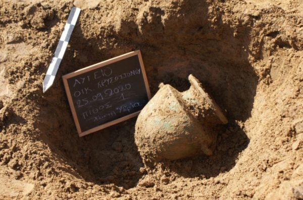 Ιδιαίτερα σημαντικά είναι τα ευρήματα του ταφικού πίθου 1 μεταξύ των οποίων μία χάλκινη τεφροδόχος υδρία με τη βάση της, η οποία φέρει ανθεμωτή διακόσμηση στις λαβές και λεοντοκεφαλές στο σημείο ένωσης των λαβών με το χείλος και ένα χάλκινο πτυκτό κάτοπτρο. Από την πρώτη εκτίμηση των κτερισμάτων του, ο ταφικός πίθος χρονολογείται στα τέλη του 4ου με αρχές του 3ου αι. π.Χ. Πέρα από το μεγάλο αριθμό των αγγείων της ελληνιστικής εποχής κυρίως, από τα ευρήματα των υπόλοιπων τάφων ξεχωρίζει μαρμάρινη επιτύμβια στήλη με αετωματική επίστεψη.