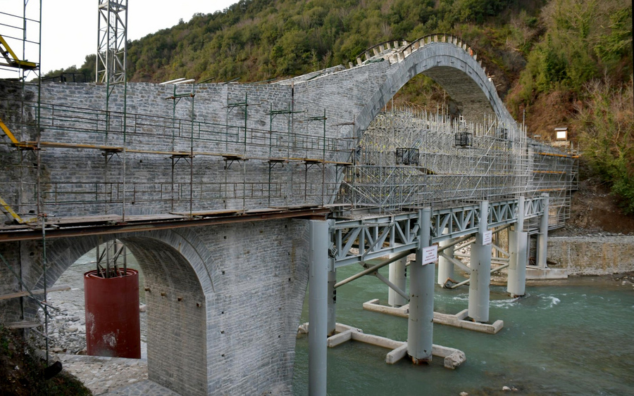 Όπως περιέγραψε ο κ. Καλιαμπάκος, για να στηθεί ξανά και να στέκει υπερήφανο το ιστορικό γεφύρι «έβαλαν πάνω του χέρι πάνω από 300 άτομα», με τον καθηγητή του ΕΜΠ να περιγράφει με γλαφυρό τρόπο τη στοργή και τη φροντίδα που χρειάστηκε να επιστρατεύσουν οι ειδικοί τεχνίτες πέτρας, ώστε να στέκει ξανά, εδώ και λίγες ημέρες, το φημισμένο γεφύρι, τα μυστικά κατασκευής του οποίου χάνονται ανά τους αιώνες.