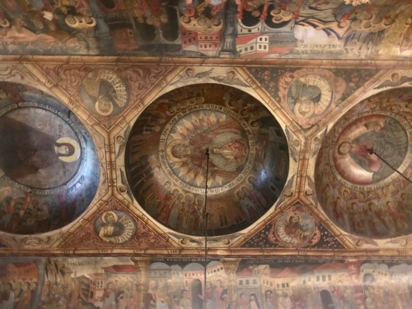 Ο ναός είναι τρίκλιτη τρισυπόστατη βασιλική μεγάλων διαστάσεων του 17ου αιώνα και σύμφωνα με επιγραφή ανακαινίστηκε το 1774. Καλύπτεται με ενιαία δίρριχτη στέγη που φέρει πλάκες από σχιστόλιθο. Εξωτερικά στις τρεις όψεις του ναού διαμορφώνεται ξύλινο προστώο που στο ΒΑ και ΝΑ άκρο του καταλήγει σε δύο παρεκκλήσια. Το τέμπλο του είναι ξυλόγλυπτο και φιλοτεχνήθηκε τον 18ο αιώνα. Οι οροφές του φέρουν τοιχογραφίες του γνωστού λαϊκού ζωγράφου Παγώνη (1802). Ο ναός παρουσιάζει προβλήματα στη στέγη, με αποσάθρωση και παραμόρφωση των ξύλινων μελών της με αποτέλεσμα την εισροή ομβρίων εντός του ναού και την σταδιακή καταστροφή των οροφογραφιών της σε αρκετά σημεία. Η Διεύθυνση Αναστήλωσης Βυζαντινών και Μεταβυζαντινών μνημείων και η Διεύθυνση Συντήρησης Αρχαίων και Νεότερων Μνημείων του ΥΠΠΟΑ, αναλαμβάνουν την πλήρη αποκατάσταση του ναού με την ανάταξη της στέγης και την αποκατάσταση του αγιογραφικού διακόσμου.