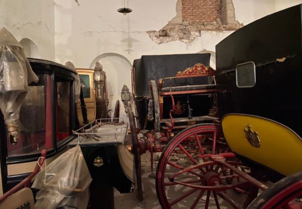 Πίσω από τον όγκο των κιβωτίων που έφταναν ως την οροφή, αποκαλύφθηκαν και βασιλικές άμαξες. Ο συνολικός αριθμός τώρα ανέρχεται σε οκτώ άμαξες και τέσσερα παϊτόνια – είδος ελαφριάς άμαξας. Όλες οι άμαξες βρίσκονται σε καλή κατάσταση. Μετά από την φάση του καθαρισμού τους θα μεταφερθούν σε ασφαλές toll, το οποίο τοποθετείται δίπλα σε εκείνο με τα αυτοκίνητα της τ. βασιλικής οικογένειας. Μόλις ολοκληρωθεί η εκκένωση του στάβλου –υπολογίζεται μέχρι τις 20 Δεκεμβρίου 2020- θα ξεκινήσει η αποτύπωση του κτηρίου προκειμένου να εκπονηθούν οι μελέτες αποκατάστασής του.