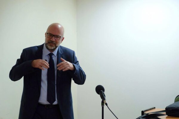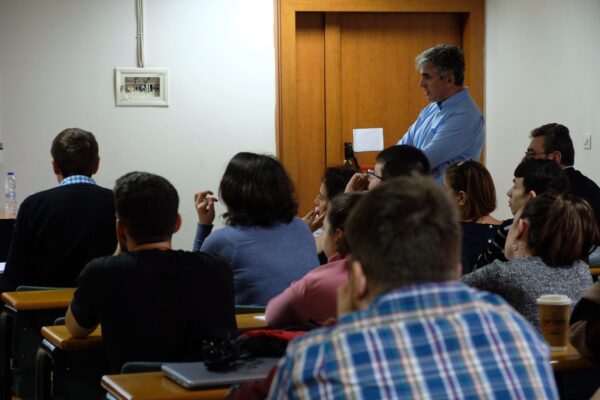 Με μεγάλη συμμετοχή φοιτητών πραγματοποιήθηκε σήμερα Τρίτη 26 Νοεμβρίου, στη Θεολογική Σχολή του ΑΠΘ στο πλαίσιο του μαθήματος Εισαγωγή στην Ηθική του κ. Πέτρου Παναγιωτόπουλου, η διάλεξη του Καθηγητή του Πανεπιστημίου της Νεμπράσκα (ΗΠΑ) κ. Νίκου Στεργίου με θέμα: «Σύγχρονη Έρευνα στο πεδίο των Biomechanics και Ορθόδοξη Θεολογία».