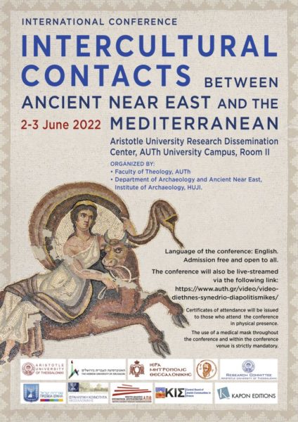 Το Τμήμα Θεολογίας του ΑΠΘ σε συνεργασία με το Τμήμα Αρχαιολογίας και Αρχαίας Εγγύς Ανατολής του Εβραϊκού Πανεπιστημίου Ιεροσολύμων διοργανώνουν Διεθνές Συνέδριο, με τίτλο «Διαπολιτισμικές Επαφές ανάμεσα στην αρχαία Εγγύς Ανατολή και στη Μεσόγειο (Intercultural Contacts between Ancient Near East and the Mediterranean)», στις 2 και 3 Ιουνίου 2022, στο ΚΕ.Δ.Ε.Α. του ΑΠΘ. Στο Συνέδριο χαιρετισμό θα απευθύνει ο Πρύτανης του ΑΠΘ, Καθηγητής Νικόλαος Γ. Παπαϊωάννου.