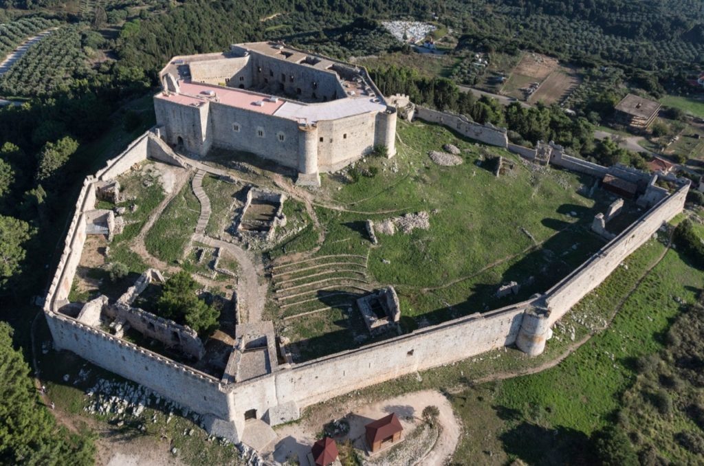 Το Κάστρο αποτελείται από δύο περιβόλους. Ο εξωτερικός περίβολος είναι πολυγωνικός και ενισχύει την οχύρωση στις ομαλότερες πλαγιές του λόφου. Στο ψηλότερο σημείο του λόφου υψώνεται ο εσωτερικός περίβολος που διαμορφώνεται με σειρά θολωτών αιθουσών γύρω από μια μεγάλη κεντρική αυλή. Στους χώρους του εσωτερικού περιβόλου βρίσκονταν η κατοικία του Καστελλάνου ή του πρίγκιπα, χώροι υποδοχής, μαγειρεία και κατάλυμα για τη φρουρά. Το μουσείο, το οποίο στεγάζεται στον εσωτερικό περίβολο του μεσαιωνικού Κάστρου αποτελεί το πρώτο και μοναδικό θεματικό μουσείο με την έκθεση «Η εποχή των ιπποτών – Οι σταυροφόροι στον Μοριά», που αφορά αποκλειστικά στην περίοδο της Φραγκοκρατίας στην Ελλάδα (13ος – 15ος αι.).