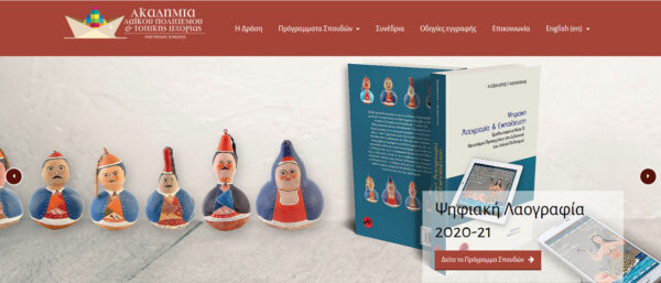 Ξεκίνησαν οι εγγραφές στην Ακαδημία Λαϊκού Πολιτισμού & Τοπικής Ιστορίαςγια τα εξ αποστάσεως (e-learning) μαθήματα του τριετούς προγράμματος «Εισαγωγή στην Επιστήμη του Λαϊκού Πολιτισμού». Ειδικότερα στο Χειμερινό Εξάμηνο (2020-21) θα ξανά προσφερθεί το μάθημα Ψηφιακή Λαογραφία (Ε’ εξάμηνο, β’ κύκλος) με επιστημονικό υπεύθυνο τον Αλέξανδρο Καπανιάρη, Δρ Ψηφιακής Λαογραφίας, Μεταδιδακτορικό Ερευνητή του Τ.Ι.Ε. Δ.Π.Θ, Διδάσκων στο Ε.Α.Π..