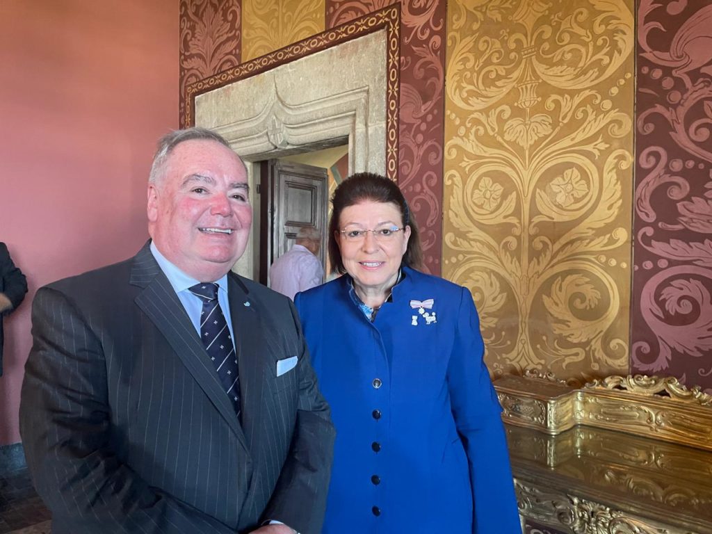 Η υπουργός πολιτισμού Λίνα Μενδώνη, στον χαιρετισμό της, σημείωσε ότι «η ημέρα είναι ιστορική, καθώς σηματοδοτεί την πρώτη επίσημη επίσκεψη Μεγάλου Μαγίστρου του Κυρίαρχου Στρατιωτικού Νοσοκομειακού Τάγματος του Αγίου Ιωάννου της Ιερουσαλήμ, της Ρόδου και της Μάλτας στην Ελλάδα, μετά την έναρξη διπλωματικών σχέσεων ανάμεσα στη χώρα μας και το Τάγμα, το 2021. Είναι η πρώτη φορά, μετά από 500 χρόνια, που Μέγας Μάγιστρος επισκέπτεται το νησί της Ρόδου, όπου το Τάγμα διαδραμάτισε κεντρικό ρόλο για 217 χρόνια».