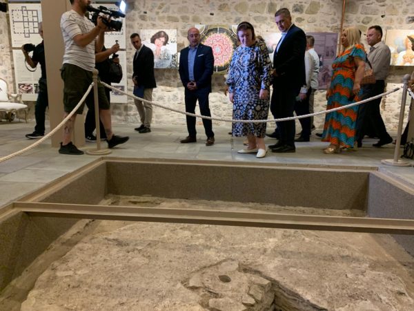«Το αρχιτεκτονικό συγκρότημα», σημείωσε η Λίνα Μενδώνη στον χαιρετισμό της, «που περιλαμβάνει το αποκαλυφθέν Δίδυμο Οθωμανικό Λουτρό, ιεροδιδασκαλείο, φιλανθρωπικά καταστήματα και το Κουρσούμ Τζαμί, εντάσσεται στο οικοδομικό πρόγραμμα του Οθωμανού διοικητή Οσμάν Σαχ, και τοποθετείται στον 16ο αιώνα. Πρόκειται για ανδρικό και γυναικείο λουτρό, με τα δύο αντίστοιχα τμήματα να διατάσσονται συμμετρικά, κατά μήκος δύο παράλληλων αξόνων, χωρίς να επικοινωνούν μεταξύ τους και με ξεχωριστές εισόδους. Τα δίδυμα λουτρά δεν είναι ιδιαίτερα συχνά στον ελλαδικό χώρο. Με την αποκατάσταση του Δίδυμου Λουτρού, αναδεικνύεται η ιστορία και το μνημειακό απόθεμα των Τρικάλων, ενώ και με την ίδρυση του Μουσείου Τσιτσάνη, η πόλη αποκτά ένα νέο τοπόσημο. Όλα αυτά αποτελούν ένα τεράστιο κεφάλαιο για την πόλη των Τρικάλων, που πρέπει να αξιοποιηθεί και να αναδειχθεί για το καλό της τοπικής κοινωνίας. Πρέπει να προσφεύγουμε στις ρίζες, στο παρελθόν μας, για να οικοδομούμε ένα ασφαλές μέλλον. Συγχρόνως, ο Πολιτισμός αποτελεί έναν πολύ σημαντικό οικονομικό μοχλό ανάπτυξης, ο οποίος πρέπει να αξιοποιείται στο μέγιστο και να ενδυναμώνει την τοπική οικονομία».