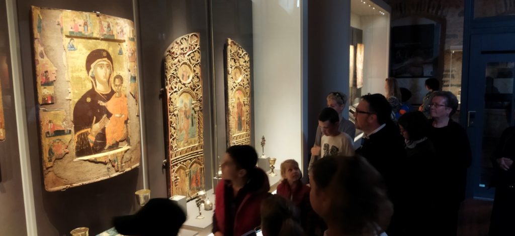 Παρά το γεγονός ο υπέροχος αυτός χώρος Πολιτισμού δεν είναι ακόμη επισκέψιμος για το κοινό, με την ευγενή θετική ανταπόκριση του Σεβασμιωτάτου κ. ΜΑΞΙΜΟΥ, άνοιξαν οι πύλες του Μουσείου ειδικά για μας και ξεναγηθήκαμε από τον π. Γρηγόριο στους υπέροχους χώρους του Μουσείου, θαυμάζοντας τους πολύτιμους εκκλησιαστικούς «θησαυρούς», τα θαυμάσια ιερά κειμήλια, αλλά και τις τέχνες που κατά το παρελθόν είχαν μεγάλη άνθηση στα Ιωάννινα.