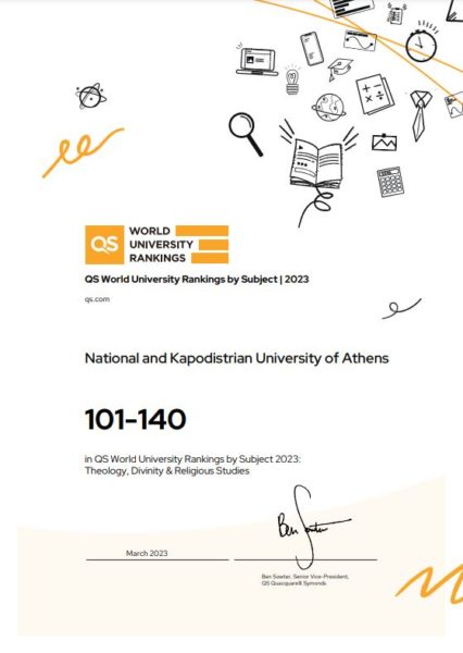 Όπως έγραψε χθες το ope.gr, στις 22 Μαρτίου, για πρώτη φορά, η Θεολογική Σχολή έλαβε την τιμητική διάκριση της κατάταξής της μεταξύ των 140 καλύτερων Σχολών στον κόσμο στο γνωστικό πεδίο «Θεολογία, Θεογνωσία και Θρησκευτικές Σπουδές» από την QS (Quacquarelli Symonds). Πρόκειται για μία τιμητική αναγνώριση του πολυδιάστατου έργου που επιτελούν όλοι, μέλη ΔΕΠ, ΕΔΙΠ, ΕΤΕΠ, διοικητικό προσωπικό, συνεργάτες και φοιτητές. “Επί δύο έτη, η Κοσμητεία και η διοίκηση του Πανεπιστημίου, εργάστηκαν με ζήλο, αθόρυβα και στοχευμένα για την προβολή και ανάδειξη του πολυσήμαντου έργου που επιτελείται από όλους μας”, τονίζεται από την Κοσμητεία.