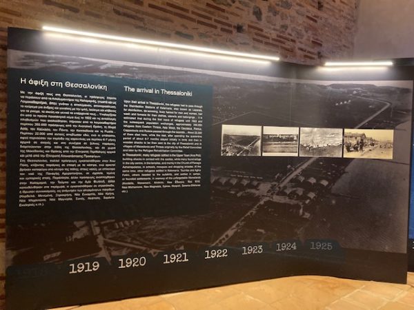 Μέσα από αρχειακό και εικονογραφικό υλικό, αναδεικνύονται οι επιπτώσεις στην καθημερινότητα της Θεσσαλονίκης από τα δραματικά γεγονότα της δεκαετίας 1912-1922, στη διάρκεια της οποίας, πολλά μνημεία έγιναν τόποι εγκατάστασης προσφύγων. Παρουσιάζεται επίσης το δράμα που ακολούθησε τη Μικρασιατική Εκστρατεία και ιδιαίτερα το ταξίδι της προσφυγιάς από τη Μικρά Ασία, την Κωνσταντινούπολη και την Ανατολική Θράκη προς τη Θεσσαλονίκη, όταν οι προσφυγικές οικογένειες έφεραν μαζί τους τα προσωπικά και εκκλησιαστικά τους κειμήλια – κυρίως φορητές εικόνες – από τους τόπους προέλευσής τους.