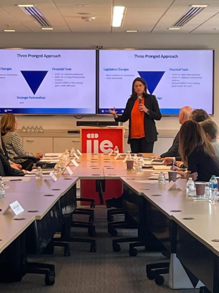Η Υπουργός Νίκη Κεραμέως παρουσίασε τη μέχρι σήμερα πορεία του Διεθνούς Προγράμματος Ακαδημαϊκής Συνεργασίας (https://www.iie.org/Programs/International-Academic-Partnership-Program) μεταξύ Ελληνικών και Αμερικανικών Πανεπιστημίων και τις προοπτικές για τη συμπερίληψη περισσότερων συνεργειών, ενώ εκπρόσωποι 20 κορυφαίων Πανεπιστημίων των ΗΠΑ, όπως τα Harvard, Johns Hopkins, Stockton και το Πανεπιστήμιο του Τέξας, ανέπτυξαν τη δική τους εμπειρία από τη συμμετοχή στο εν λόγω πρόγραμμα.