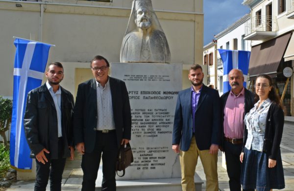 Η μέρα ξεκίνησε με δοξολογία από ιερείς στον Ιερό Ναό Αγίου Νικολάου Μεθώνης καθώς και αρτοκλασία, ενώ συνεχίστηκε στο μνημείο Ηρώων της πόλης με την κατάθεση στεφάνων προς τιμήν του Επισκόπου Γρηγορίου.