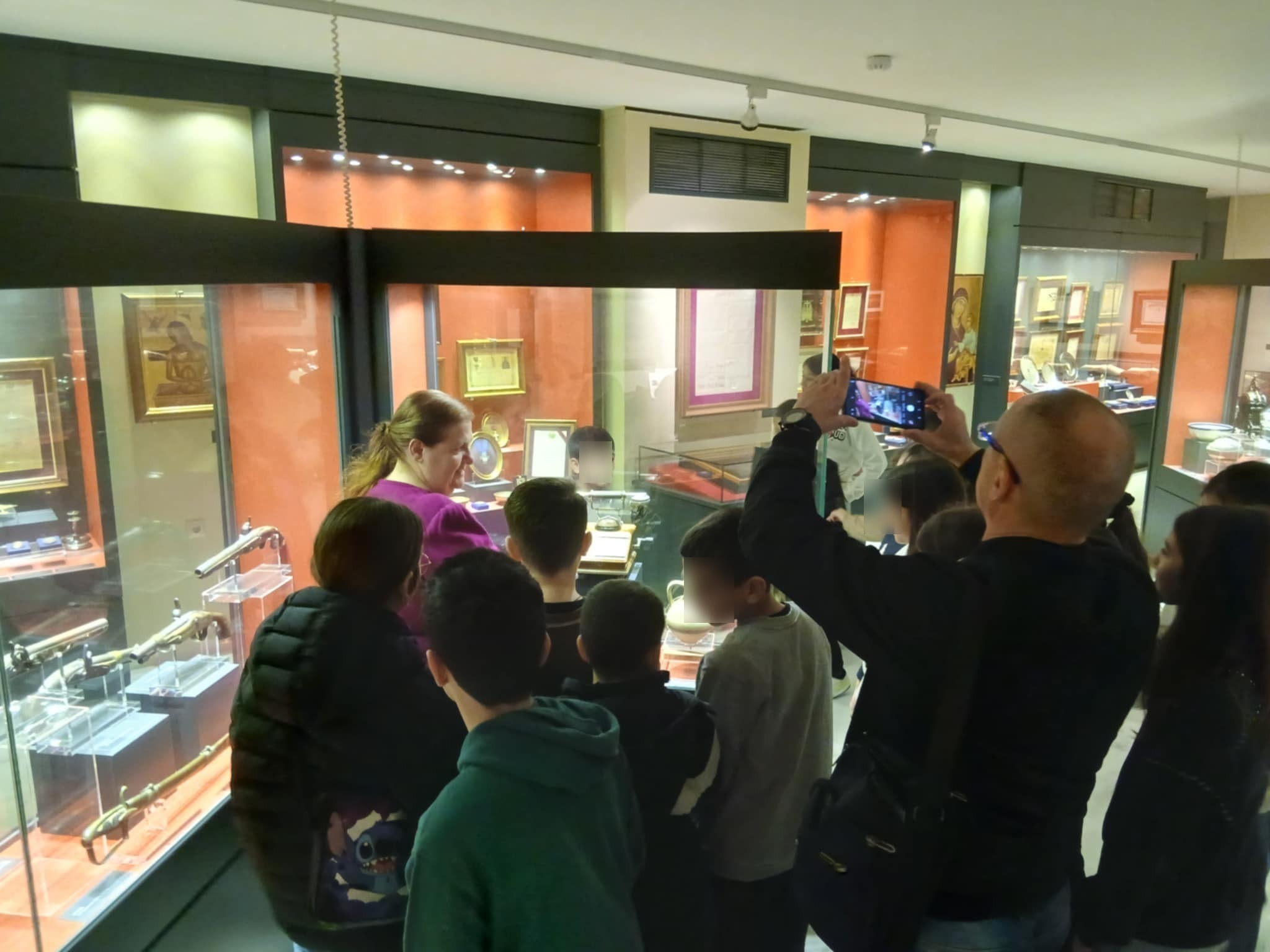 Τα παιδιά και οι εκπαιδευτικοί – συνοδοί τους, κατά την διάρκεια της επίσκεψής τους, περιηγήθηκαν στους χώρους του Μουσείου και είχαν την ευκαιρία να γνωρίσουν και να θαυμάσουν από κοντά πολύτιμα κειμήλια θρησκευτικής, εθνικής και ιστορικής αξίας, που προέρχονται από την προσωπική συλλογή του Ιάκωβου Τσούνη, του νεότερου βετεράνου του Β΄ Παγκοσμίου Πολέμου.