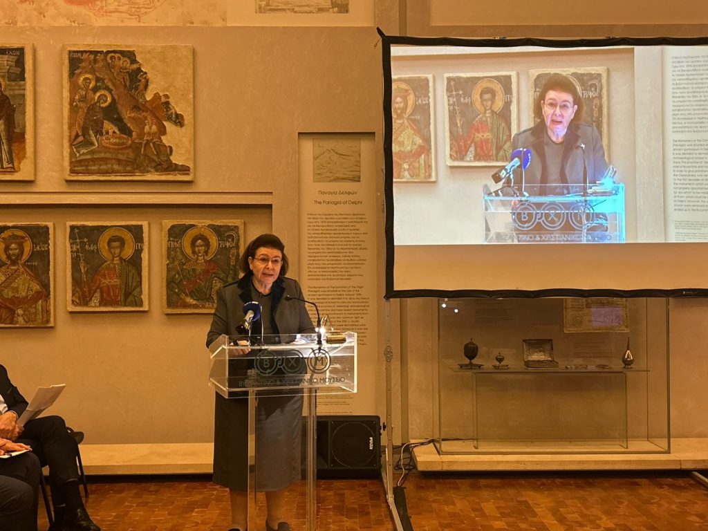 H υπουργός Πολιτισμού Λίνα Μενδώνη παραβρέθηκε και απηύθηνε χαιρετισμό στο επιστημονικό αφιέρωμα προς τιμήν της Ελένης Αρβελέρ, το οποίο οργανώθηκε από τη Διοίκηση του Βυζαντινού και Χριστιανικού Μουσείου Αθηνών, στο Μουσείο, παρουσία της Προέδρου της Δημοκρατίας Κατερίνας Σακελλαροπούλου.