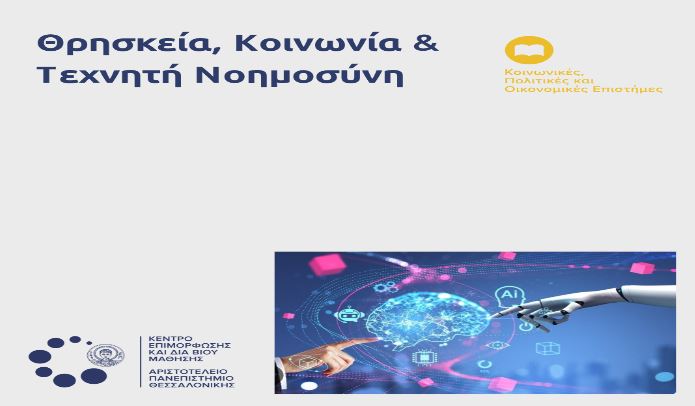 Το Κέντρο Επιμόρφωσης και Διά Βίου Μάθησης (ΚΕΔΙΒΙΜ) του Αριστοτελείου Πανεπιστημίου Θεσσαλονίκης (Α.Π.Θ) διοργανώνει εκ νέου για τρίτη συνεχόμενη χρονιά τοΔΙΑΚΕΚΡΙΜΕΝΟ επιστημονικό εκπαιδευτικό πρόγραμμαμε επίσημη αναγνώρισηκαι συμμετοχή στη ΔΕΘ Θεσσαλονίκης (Σεπτέμβριος 2024) και στην Έκθεση Τεχνολογίας (BEYOND, Απρίλιος 2024)με τίτλο: “ΘΡΗΣΚΕΙΑ, ΚΟΙΝΩΝΙΑ ΚΑΙ ΤΕΧΝΗΤΗ ΝΟΗΜΟΣΥΝΗ”, διάρκειας τεσσάρων μηνών (διδακτικές ώρες 90), το οποίο θα διεξαχθεί διαδικτυακά και θα υλοποιηθεί με τη μέθοδο της σύγχρονης εξ αποστάσεως εκπαίδευσης, (μέσω της πλατφόρμας ZOOM).
