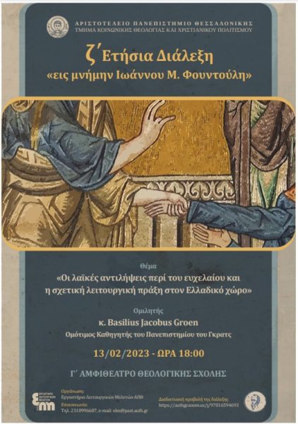 Η έβδομη κατά σειρά Ετήσια Διάλεξη «εις μνήμην Ιωάννου Μ. Φουντούλη», θα πραγματοποιηθεί σήμερα, Δευτέρα 13 Φεβρουαρίου 2023 και ώρα 18:00 στο Γ΄ Αμφιθέατρο της Θεολογικής Σχολής του ΑΠΘ.