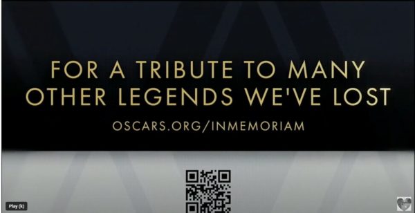 Κατά τη διάρκεια της 95ης απονομής των Όσκαρ η Ακαδημία μέσα από την ειδική ενότητα «In Memoriam» απέτισε φόρο τιμής σε όλες τις προσωπικότητες από τον χώρο του κινηματογράφου, που έφυγαν από τη ζωή τη χρονιά που μας πέρασε.