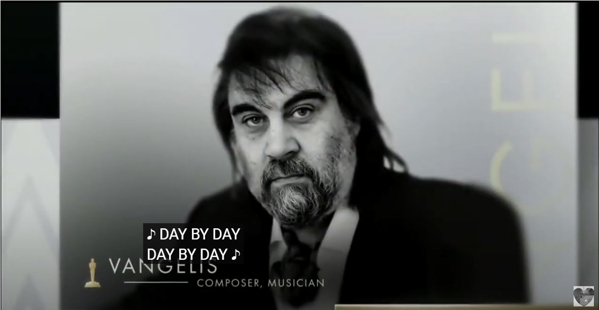 Υπό τους ήχους του τραγουδιού «Calling All Angels» από τον βραβευμένο με Grammy μουσικό Λένι Κράβιτζ (Lenny Kravitz) στη σκηνή παρουσιάστηκε το βίντεο-αφιέρωμα που περιελάμβανε μεταξύ άλλων τους Ρέι Λιότα (Ray Liotta), ‘Αντζελα Λάνσμπερι (Angela Lansbury), Ράκελ Γουέλς (Raquel Welch),Τζέιμς Κάαν (James Caan) και Τζίνα Λολομπριγκίτα (Gina Lollobrigida). Ανάμεσά τους ήταν ο Βαγγέλης Παπαθανασίου και η Ειρήνη Παπά. Η τελευταία φωτογραφία ήταν αφιερωμένη στον Ουόλτερ Μίρις (Walter Mirisch) παραγωγό και πρώην πρόεδρο της Ακαδημίας.