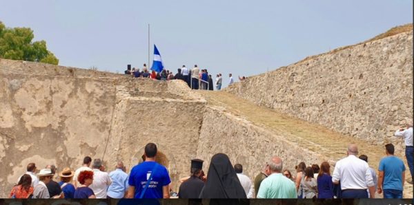 Έπαρση αντιγράφου της σημαίας που είχε υψωθεί στο μνημείο στις 21 Μαΐου 1864, ημέρα Ένωσης των Επτανήσων με την μητέρα Ελλάδα