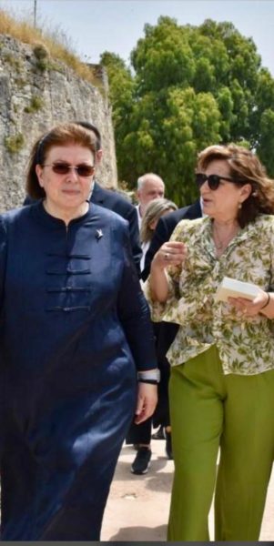 Η Υπουργός Πολιτισμού Λίνα Μενδώνη με τη Γενική Διευθύντρια Αρχαιοτήτων και Πολιτιστικής κληρονομιάς του ΥΠΠΟ Ολυμπία Βικάτου