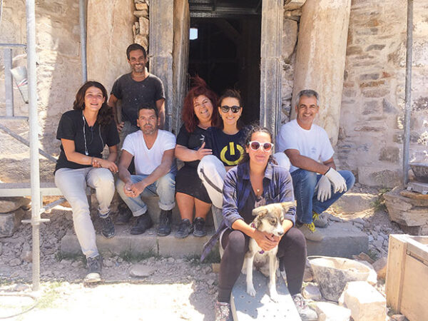Ολόκληρη η ομάδα, με αρχαιολόγους, συντηρητές και εργάτες, ήρθε να μας καλωσορίσει, βγαίνοντας από το σκοτάδι που επικρατεί στο εσωτερικό του ναού στο δυνατό κυκλαδίτικο φως του μεσημεριού. Οι συνθήκες εργασίας είναι αντίξοες όλη τη διάρκεια του έτους. Ζέστη το καλοκαίρι, κρύο τον χειμώνα, μποφόρ όλες τις εποχές του χρόνου. Ομως η αφοσίωση για τη διάσωση και ανάδειξη ενός από τα πιο εμβληματικά μνημεία του Αρχιπελάγους τούς δίνει κουράγιο και ενθουσιασμό.