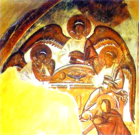 Για το δόγμα της Αγίας Τριάδος, εκτός από τις ρητές μαρτυρίες της Καινής Διαθήκης, έχουμε και υπαινιγμούς στην Παλαιά Διαθήκη. Ένας από αυτούς τούς υπαινιγμούς είναι και η εμφάνιση του Θεού στον Αβραάμ υπό την μορφή τριών ανδρών.