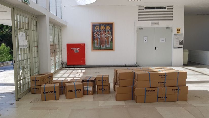 Συγκεκριμένα παρελήφθη υλικό που όχι απλά καλύπτει τις υπάρχουσες λειτουργικές ανάγκες του κτηριακού συγκροτήματος της Θεολογικής Σχολής Αθηνών, αλλά επιπλέον ποσότητες, που συνιστούν παρακαταθήκη για το μέλλον.