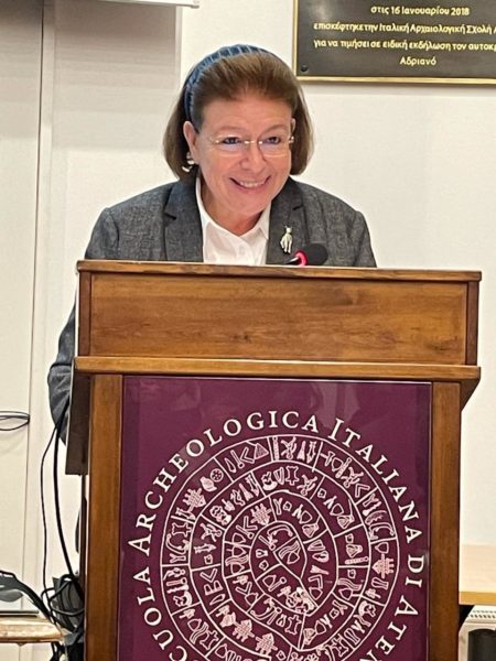 Πριν πω δύο λόγια για την έκδοση θα ήθελα να ευχαριστήσω τον κύριο Πρέσβη για τα καλά του λόγια και να επιβεβαιώσω ότι οι σχέσεις των δυο χωρών μας είναι στο καλύτερο δυνατό επίπεδο. Οι κυβερνήσεις μας συνεργάζονται συστηματικά, τα δε Υπουργεία Πολιτισμού και των δύο χωρών έχουν μια τακτική, στενή συνεργασία, η οποία αποδίδει ποικίλους καρπούς τόσο στο επίπεδο της πάταξης της αρχαιοκαπηλίας και της παράνομης διακίνησης των πολιτιστικών αγαθών, όσο και της διοργάνωσης σημαντικών αρχαιολογικών εκθέσεων, δράσεων σύγχρονου πολιτισμού και πρωτοβουλιών που αναλαμβάνουμε από κοινού για σημαντικές προκλήσεις της εποχής μας, όπως η κλιματική κρίση και οι συνέπειές της ή οι επιπτώσεις της στην πολιτιστική κληρονομιά – υλική και άυλη. Για την Ιταλική Αρχαιολογική Σχολή δεν μπορώ παρά να πω ότι όλα αυτά τα χρόνια συνεργάζεται με άριστο τρόπο θα έλεγα, με το Υπουργείο Πολιτισμού και τις υπηρεσίες του και στο επίπεδο του πεδίου, με τις ανασκαφές και τις έρευνες που διεξάγει η Σχολή, είτε είναι αρχαιολογικές έρευνες συνεργασίας με την Αρχαιολογική Υπηρεσία του ΥΠΠΟ, είτε σε επίπεδο επιστημονικών πρωτοβουλιών.