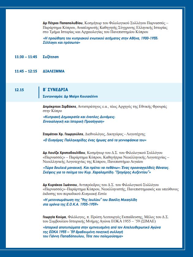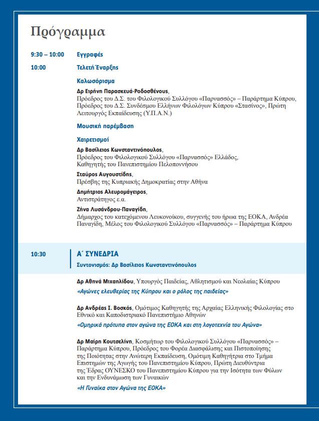 Ημερίδα «Αγώνες ελευθερίας του Κυπριακού Ελληνισμού. Ιστορική διαδρομή, μνήμες, νόστος και λογοτεχνική παραγωγή