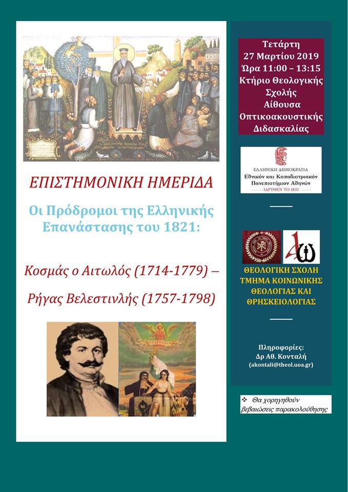 Το Τμήμα Κοινωνικής Θεολογίας και Θρησκειολογίας του Ε.Κ.Π.Α. διοργανώνει Επιστημονική Ημερίδα για την Εθνική Επέτειο της 25ης Μαρτίου 1821 με θέμα: