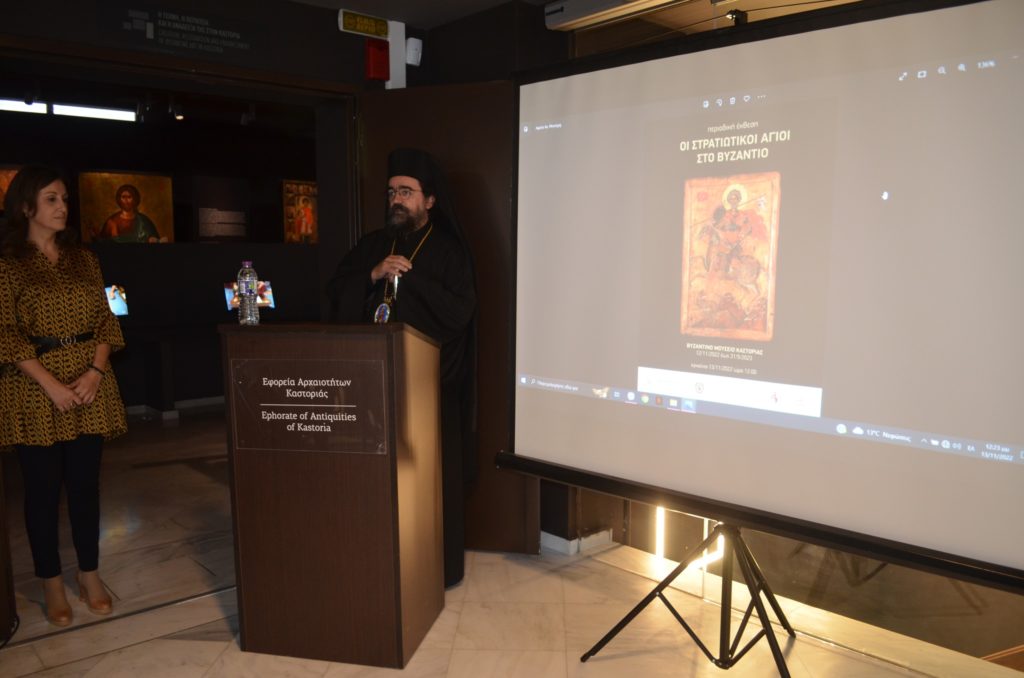 Εγκαινιάστηκε την Κυριακή 13 Νοεμβρίου στο Βυζαντινό Μουσείο Καστοριάς, η περιοδική έκθεση της Βυζαντινής Οικουμένης με τίτλο “Οι Στρατιωτικοί Άγιοι στο Βυζάντιο” που πραγματοποιείται με τη συνεργασία της Εφορείας Αρχαιοτήτων Καστοριάς.