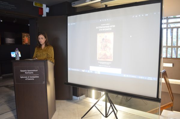 Ακολούθησε εισήγηση από τον αρχαιολόγο της Εφορείας Αρχαιοτήτων Καστοριάς κ. Ιωάννη Σίσιου, ο οποίος παρουσίασε μέρος των Στρατιωτικών Αγίων που βρίσκονται σε τοιχογραφίες των Βυζαντινών εκκλησιών της Καστοριάς.