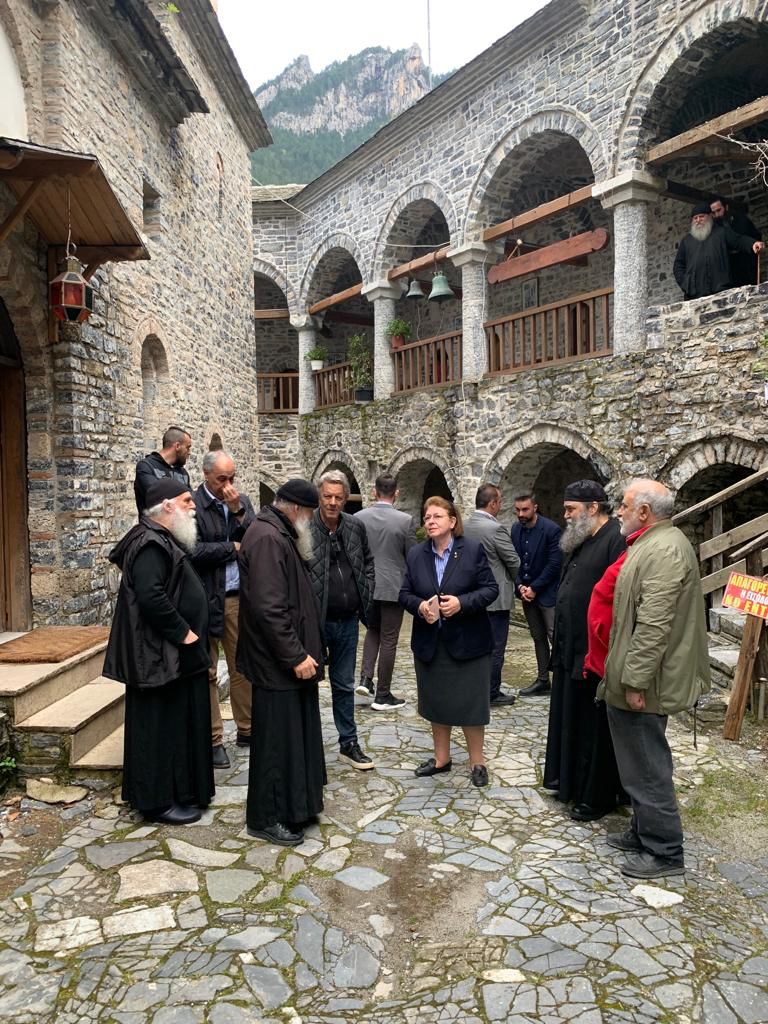 Η Λίνα Μενδώνη επισκέφθηκε, επίσης, τη Μονή του Αγίου Διονυσίου εν Ολύμπω του 16ου αι., όπου η Διεύθυνση Αναστήλωσης Βυζαντινών και Μεταβυζαντινών Μνημείων του ΥΠΠΟΑ εκτελεί την αναστήλωση της δυτικής πτέρυγας κελλιών, καθώς και του κωδωνοστασίου και του ηγουμενείου, ύψους 1.000.000 ευρώ. Το έργο της αναστήλωσης θα συνεχιστεί και στην επόμενη χρηματοδοτική περίοδο.