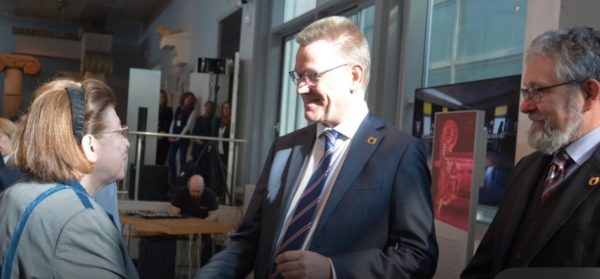 Η Υπουργός Πολιτισμού Λίνα Μενδώνη με τον επιμελητή του Αρχαιολογικού Μουσείου του Πανεπιστημίου του Μύνστερ H.-Helge Nieswandt