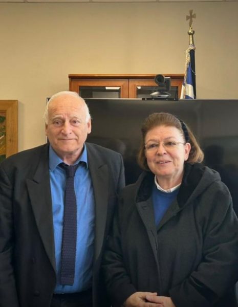 Η Υπουργός Πολιτισμού Λίνα Μενδώνη με τον Αντιπεριφερειάρχη Π.Ε. Χίου, της Περιφέρειας Βορείου Αιγαίου, Παντελή Βρουλή