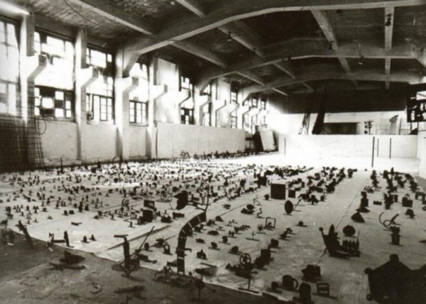 α) Δύο αίθουσες εργαστηρίου γλυπτικής στο ισόγειο και στο υπόγειο. Στη στάθμη του ισογείου, αναπτύσσεται η μεγάλη αίθουσα εργαστηρίου γλυπτικής. Πρόκειται για μια ενιαία αίθουσα, επιφάνειας 413 τ.μ. Στη στάθμη του υπογείου βρίσκεται, επίσης, ένας ενιαίος μικρότερος διαμήκης χώρος, ο οποίος έχει εμβαδόν 236 τ.μ. Σήμερα έχει χρήση αποθήκης, αρχείου υλικών και γλυπτών.