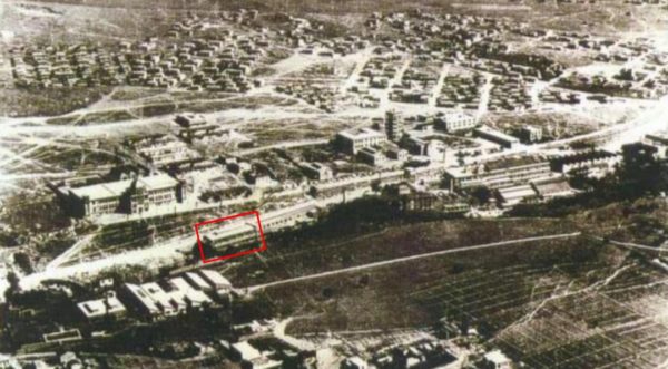 Αεροφωτογραφία του 1928 όπου εμφανίζεται η χωροθέτηση και η πίσω όψη του κτηρίου