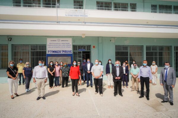 Στη συνέχεια, η Υπουργός επισκέφθηκε τα σχολεία, 1 ο Γυμνάσιο, 5 ο Νηπιαγωγείο, 5 ο Δημοτικό, 1 ο ΓΕΛ και το Μουσικό Σχολείο στην περιοχή της Τρίπολης, συνοδεία του Δημάρχου Τρίπολης, κ. Κώστα Τζιούμη, του Διευθυντή Πρωτοβάθμιας, κ. Φώτιου Γκέσουρα και του Διευθυντή Δευτεροβάθμιας, κ. Γιώργου Σελίμη.