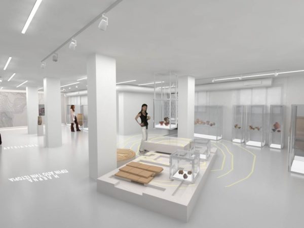 Ο μουσειογραφικός σχεδιασμός στοχεύει να εξυπηρετήσει τις γενικές αρχές οργάνωσης ενός μουσειακού χώρου με ενιαία αντιμετώπιση και λειτουργική συνοχή του συνόλου, σύγχρονο εξοπλισμό, άνετη κίνηση, ασφάλεια και καθολική προσβασιμότητα του κοινού. Η μεταφορά της ιδέας του ιστορικού και αρχαιολογικού παλίμψηστου στο χώρο, χρησιμοποιεί ως εργαλεία την έκθεση των ευρημάτων σε διαφορετικές στάθμες, τη διαφάνεια των κατασκευών με την οποία ενισχύεται η δυνατότητα της οπτικής επικοινωνίας ανάμεσα στις θεματικές ενότητες, καθώς και τη δυνατότητα ανάγνωσης του αρχαιολογικού υλικού προοπτικά, μέσα από την οπτική αλληλεπίδραση, ενσωμάτωση στις εκθεσιακές κατασκευές ψηφιακών τεχνολογιών (ακουστικά εκθέματα, διαδραστικές εφαρμογές κλπ.).
