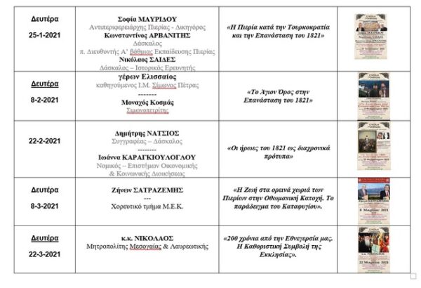 10 εκδηλώσεις και 15 καταξιωμένοι ομιλητές φιλοξενούνται στο νέο πρόγραμμα της Σχολής Γονέων από το Ανοικτό Πανεπιστήμιο Κατερίνης, το οποίο για 32η χρονιά συνεχίζει δυναμικά την πορεία του και ως επί το πλείστων είναι αφιερωμένο στα 200 χρόνια από την Ελληνική Επανάσταση του 1821.