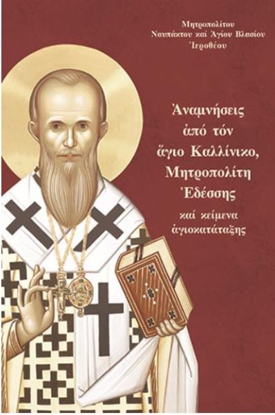 “Ἀναμνήσεις ἀπό τόν ἅγιο Καλλίνικο, Μητροπολίτη Ἐδέσσης καί κείμενα ἁγιοκατάταξης” είναι ο νέος τίτλος του βιβλίου του Μητροπολίτη Ναυπάκτου και Αγίου Βλασίου κ. Ιεροθέου για τον Άγιο Καλλίνικο όπου δημοσιεύονται αναμνήσεις κληρικών, μοναχών και λαϊκών που γνώρισαν τον Άγιο Καλλίνικο, Μητροπολίτη Εδέσσης, Πέλλης και Αλμωπίας.