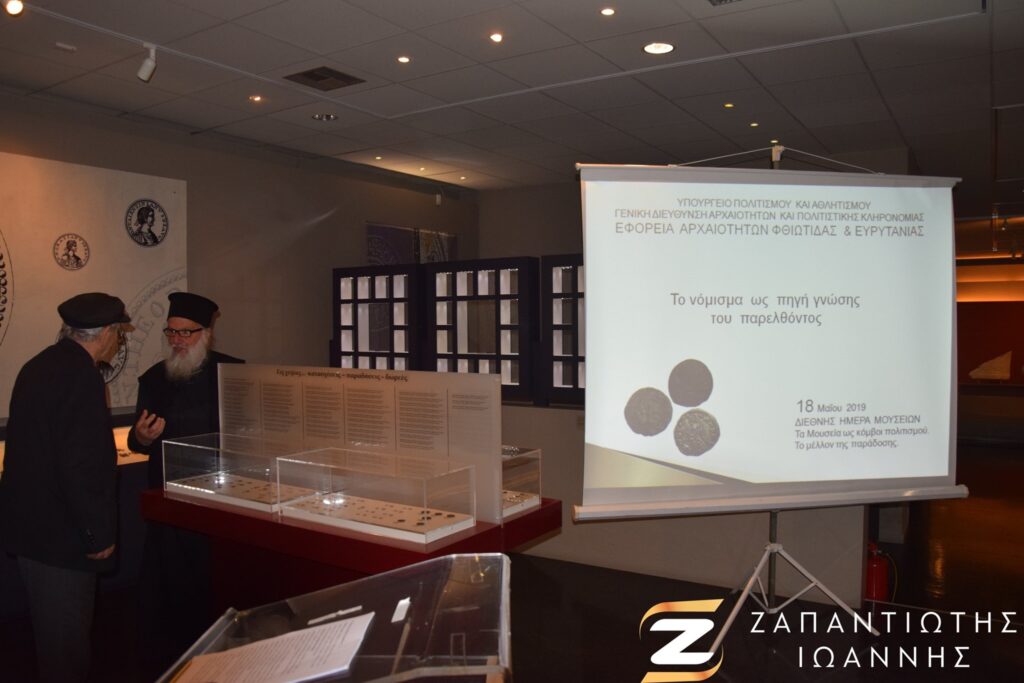 Η Εφορεία Αρχαιοτήτων Φθιώτιδας και Ευρυτανίας συμμετέχοντας στον εορτασμό για την Διεθνή Ημέρα Μουσείων 2019 «Τα Μουσεία ως κόμβοι πολιτισμού: το μέλλον της παράδοσης», πραγματοποίησε το Σάββατο 18 Μαΐου εκδήλωση στο Βυζαντινό Μουσείο Φθιώτιδας στην Υπάτη. Κατά την διάρκεια της εκδήλωσης πραγματοποιήθηκε ομιλία με θέμα “Το νόμισμα ως πηγή γνώσης του παρελθόντος” καθώς επίσης και θεματική ξενάγηση στην περιοδική έκθεση του Μουσείου. Η περιοδική αυτή έκθεση, που θα διαρκέσει για περίπου ένα χρόνο, περιλαμβάνει νομίσματα που φυλάσσονται στις αποθήκες του Βυζαντινού Μουσείου Φθιώτιδας, βρέθηκαν εις χείρας φυσικών προσώπων και δεν αποτελούν προϊόντα ανασκαφικής ή άλλης αρχαιολογικής έρευνας. Σκοπός της εκδήλωσης ήταν ο επισκέπτης να κατανοήση το νόμισμα ως φορέας ιδεών, τεκμήριο οικονομικών και κοινωνικών δομών, αλλά και των καλλιτεχνικών τάσεων της εποχής που τα δημιούργησε, με χρονικό ορίζοντα από τον 4ο αι. π.Χ. έως τον 17ο αι. μ.Χ. Ιδιαίτερη έμφαση δόθηκαν κυρίως στη νομισματοκοπία των κρατιδίων, που δημιουργήθηκαν στον ελλαδικό χώρο μετά την κατάκτηση της Πόλης από τους Φράγκους (1204), καθώς επίσης και στις εκδόσεις της Γαληνοτάτης Δημοκρατίας της Βενετίας.