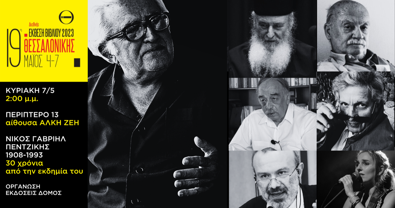 Ο π. Βασίλειος Γοντικάκης, πρώην ηγούμενος της Ιεράς Μονής Ιβήρων Αγίου Όρους, την Κυριακή 7 Μαΐου, στις14.00, θα μιλήσει στη μεγάλη εκδήλωση για τα 30 χρόνια από την εκδημία του Νίκου Γαβριήλ Πεντζίκη, που διοργανώνεται από τις εκδόσεις ΔΟΜΟΣ, στο πλαίσιο της 19ης Διεθνούς Έκθεσης Βιβλίου Θεσσαλονίκης!