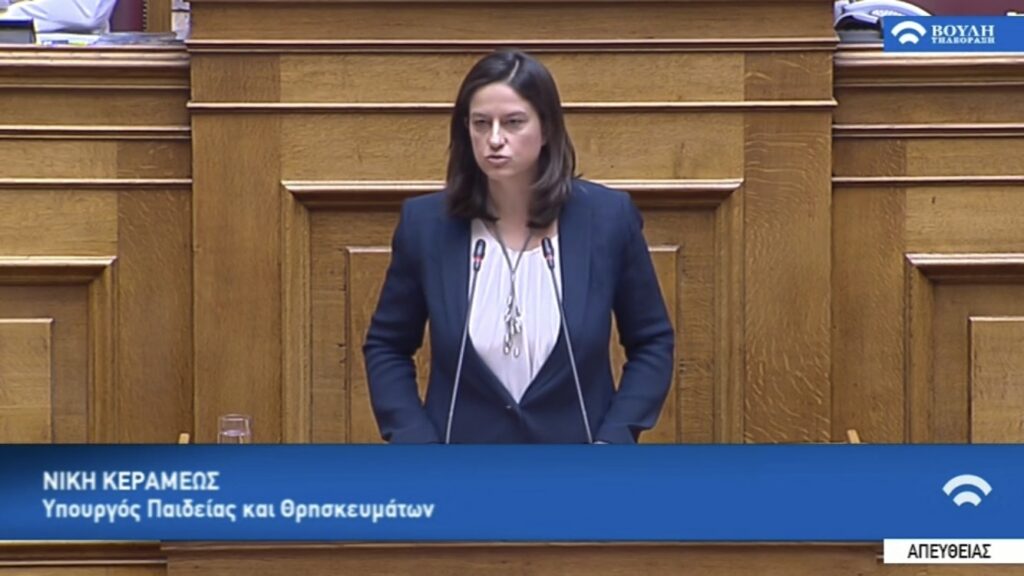 Τις προγραμματικές της δηλώσεις σχετικά με τα ζητήματα της Παιδείας εξήγγειλε από το βήμα της Βουλής σήμερα το μεσημέρι η υπουργός Παιδείας και Θρησκευμάτων κ. Νίκη Κεραμέως.